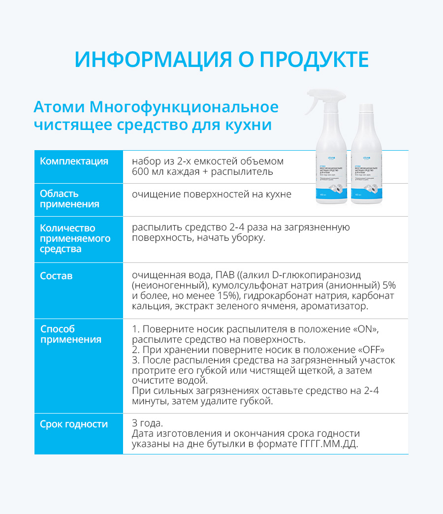 С Атоми Многофункциональным чистящим средством для кухни ваша кухня всегда будет сиять чистотой и свежестью!